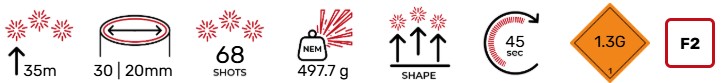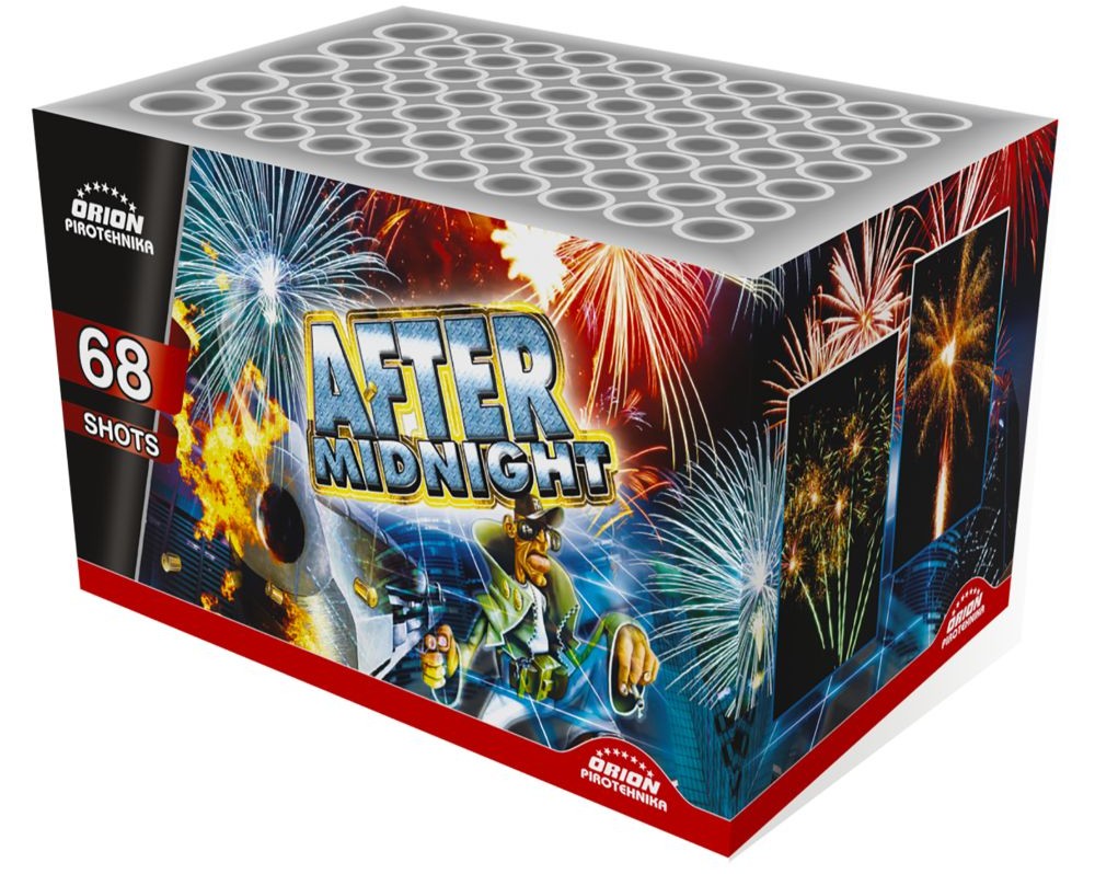 After Midnight ist eine Feuerwerkskombination, eine Showfeuerwerksbatterie mit 68 Auswürfen, flacher Form, einer Kombination aus 20 und 30 mm Kaliber, erreicht eine Höhe von 35 Metern und hält 45 Sekunden.