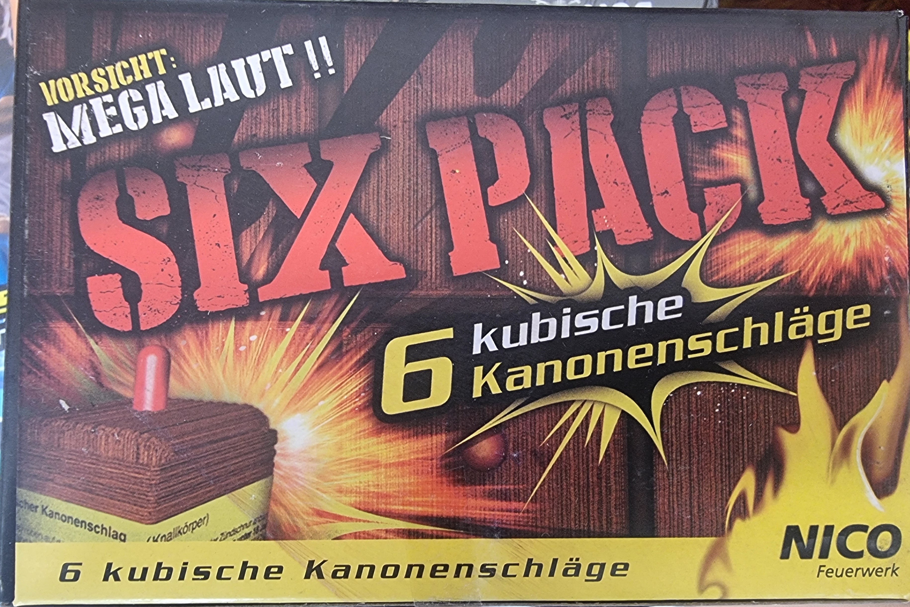 6 kubische Kanonenschläge mit Sicherheitszünder.