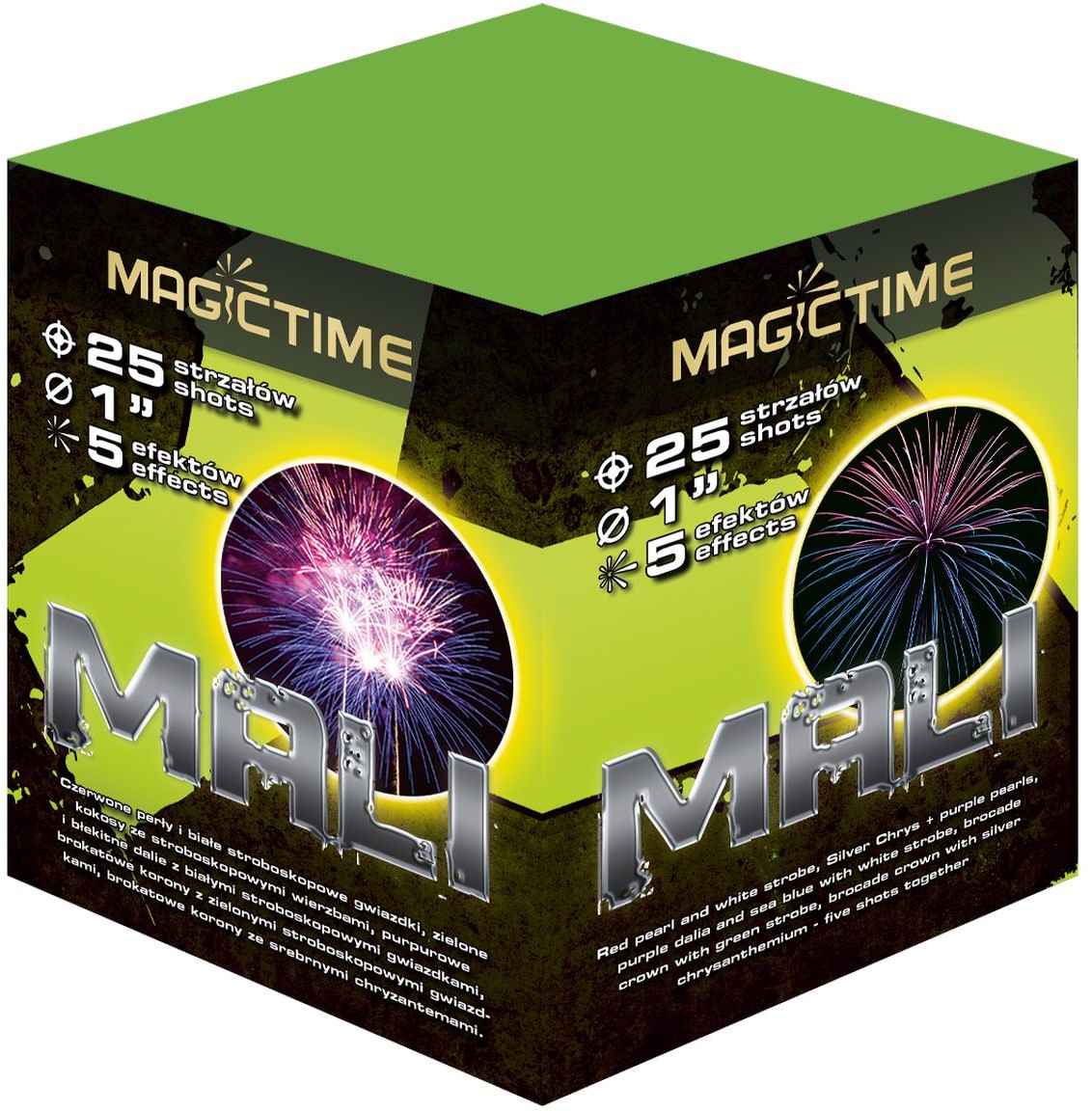 Mali, 25 Schuss, NEM: 275g, Kaliber: 25mm, Shape: I, Brenndauer ca. 35 Sekunden
