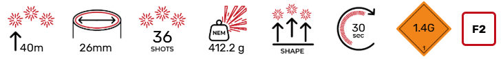 Unzählige Effekte in verschiedenen Farben, große Kaliber und eine große Anzahl an Auswürfen mit großer Reichweite sorgen für ein extremes Erlebnis.