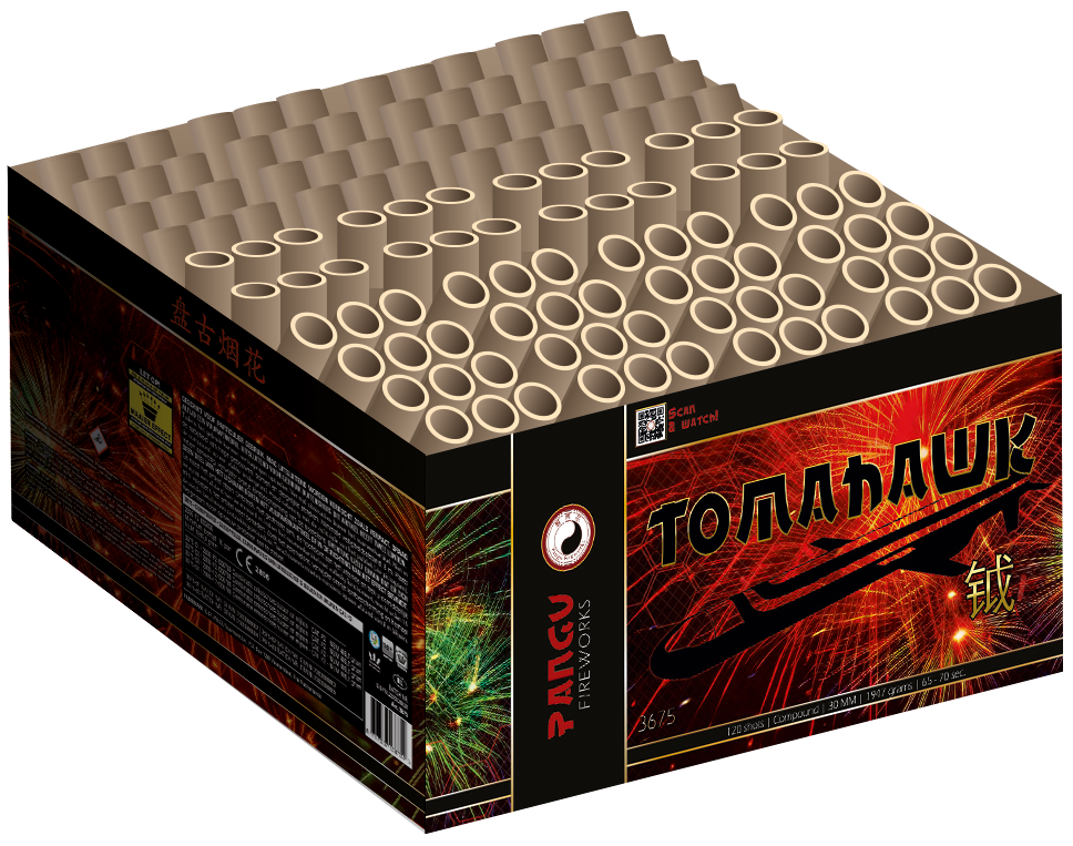 Tomahawk, 120 Schuss, NEM: 1960g, Kaliber: 30mm, Brenndauer ca. 50 Sekunden
